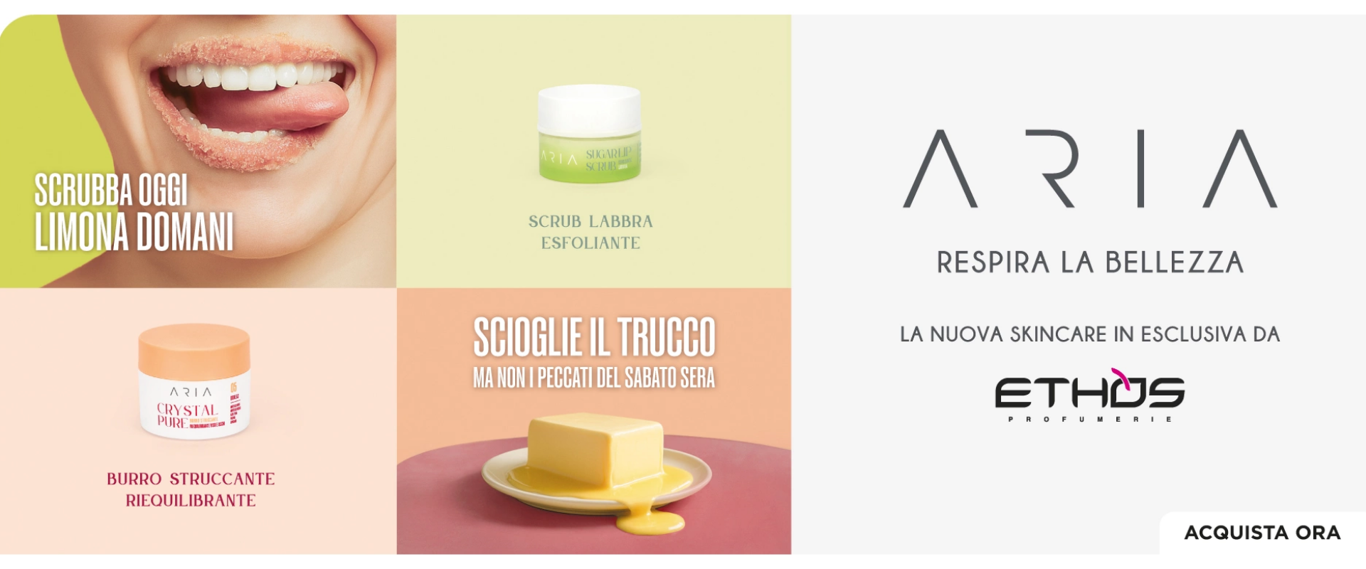 Prendersi una pausa, trovare del tempo per sé stessi, evadere dalla routine quotidiana: questa è l’esperienza e l’essenza che vuole trasmettere ARIA, la collezione di prodotti corpo distribuita in esclusiva da Ethos Profumerie.