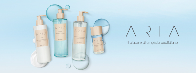 Prova anche Aria Detergenza viso, il piacere di un gesto quotidiano. Latte Detergente, Lozione Tonica, Acqua Micellare e Struccante Bifasico, quattro prodotti per la perfetta routine di detergenza viso.