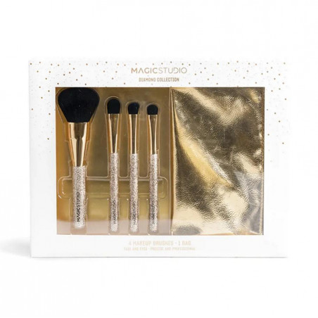 Set di pennelli per viso e occhi. Inoltre, con una meravigliosa borsa da toilette dorata