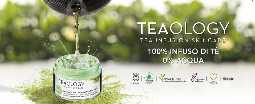 Teaology è un brand giovane e indipendente che nasce dall’amore per il tè e per il clean beauty innovativo e sostenibile. Nel cuore di ogni prodotto c’è una tecnologia brevettata studiata per estrarre dalle foglie di tè il loro ricco concentrato di polifenoli antiossidanti. Il suo nome è Tea Infusion Skincareâ I trattamenti Teaology sono 100% made in Italy, vegan, testati dermatologicamente, cruelty free, rispettosi dell’ambiente e formulati con ingredienti naturali da fonti rinnovabili. “Crediamo che ciò che fa bene a noi faccia bene alla nostra pelle. Per questo abbiamo racchiuso i benefici di una tazza di tè in ogni nostro prodotto”. Cecilia Garofano - founder.