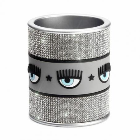 Porta penne cilindrico con applicazione strass all over e fascia in silicone logomania in rilievo (H: 8,5 cm, D: 6,6...