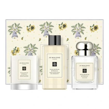 Cofanetto regalo festivo JO MALONE London pensato per la donna, con tre mini formati di fragranze e prodotti corpo...
