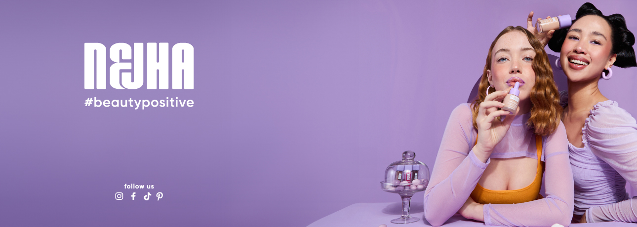 Benvenut* nel mondo make - up di Nejha, dove la bellezza è energia, passione e positività. Con il nostro claim #BeautyPositive e i nostri prodotti, vogliamo portare gioia e luce nella vita delle persone, una ventata di energia e positività, la giusta motivazione per sentirci tutt* più bell*...sempre.