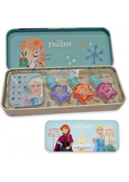 Questo set include 3 diversi smalti colorati, arricchiti con nail art adesive di Frozen per creare la tua manicure perfetta. Il tutto in un bellissimo astuccio di latta decorato con le immagini di Anna & Elsa, da riutilizzare come portaoggetti o in tanti altri modi.