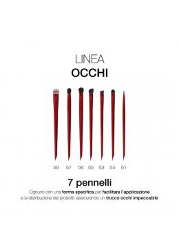 Pennello per l'applicazione di polveri e di tutti i prodotti in crema del contorno occhi. La forma piatta associata a setole fini, compatte e mediamente rigide, permette di stendere e dosare la corretta quantità di prodotto in modo omogeneo e senza striature. Per l'utilizzo di prodotti in crema nell'area occhi prelevare un piccolo quantitativo di prodotto e spatolare dall'interno verso l'esterno effettuando una leggera pressione. Per le discromie presenti sul viso il prodotto andrà tamponato sulla parte interessata, ripetendo all'occorrenza l'operazione, sino a raggiungere il grado di copertura desiderata.