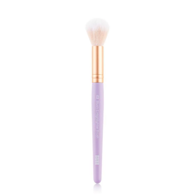 Usalo così! Il nostro 03 Blush & Highlighter Brush? È il tuo alleato perfetto per l'applicazione di: Don't Be Shy - Blush in Polvere Shine, Please - Illuminante in Polvere