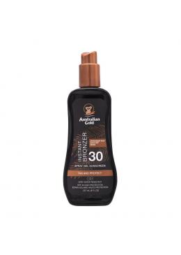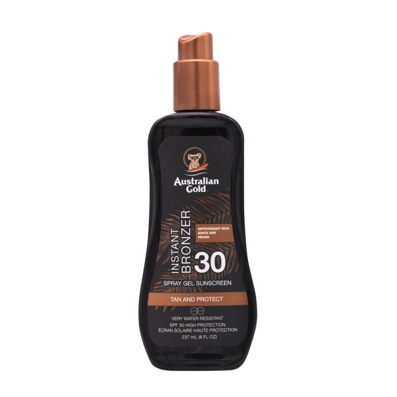 Spray Gels SPF 30 con effetto bronze. Formule protettive senza Oli Minerali (no paraffinum) create per proteggere la pelle durante l’esposizione ai Raggi UVA e UVB e contrastare i danni causati da Raggi Infrarossi.