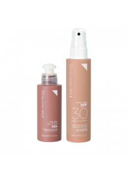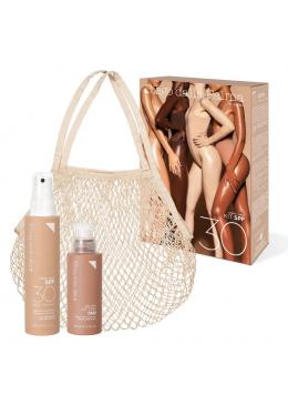 In un kit tutto ciò che serve per garantire protezione e rigenerazione per una pelle abbronzata più a lungo e riparata dai danni causati dai raggi ultravioletti e agenti esterni come salsedine e vento. All'interno del kit troverai l'esclusiva Mesh Summer Bag, perfetta per portare i tuoi solari sempre con te! Il kit contiene: - Latte spray protettivo SPF50 (150ml) + AFTER TAN Balsamo lenitivo doposole (100ml) + Mesh Summer Bag