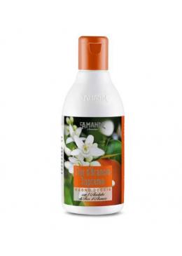 Delicato bagno doccia dalla soffice schiuma profumata. Le raffinate note di cuore dell’assoluta dei fiori di arancio, portano buon umore e allontanano lo stress. Il bouquet fiorito è completato da un fresco accordo d’acqua. Le note agrumate di testa di mandarino, limone ed arancia rossa di Sicilia le conferiscono spunto ed immediatezza. Muschio bianco, ambra, sandalo e vaniglia fissano e danno persistenza alla composizione. A pH dermocompatibile.