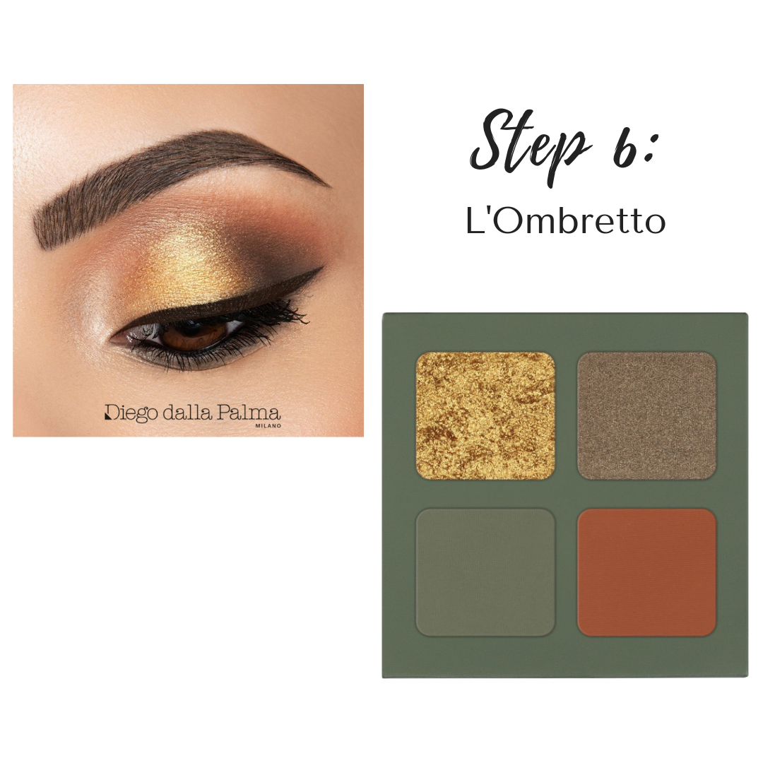Ora iniziamo a dare personalità al nostro make up! Con la nuova palette Into The Wild di Diego Dalla Palma possiamo realizzare una sfumatura con i colori di tendenza: un opaco tinta mattone, un beige brillante e infine un tocco di gold.