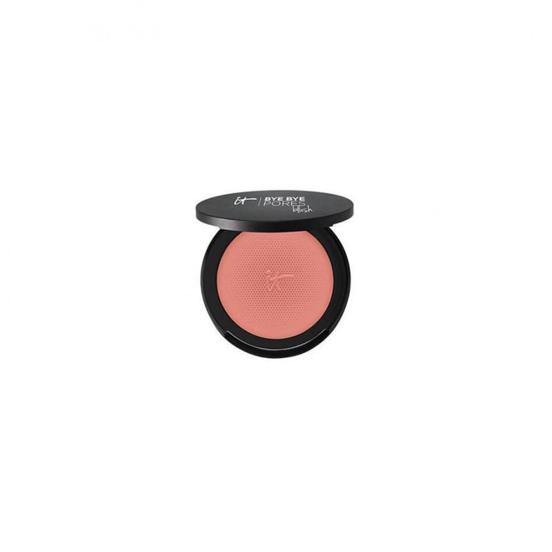 Inserire il pennello da trucco IT Cosmetics preferito nella confezione e applicare leggermente il fard sulle guance con movimenti verso l'alto per ottenere un colorito giovanile.