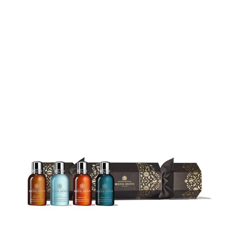 Un elegante cracker natalizio che contiene quattro dei nostri bagnoschiuma legnosi e aromatici più amati una lussuosa aggiunta ad una tradizionale tavola natalizia. Include Re-charge Black Pepper Gel Doccia 50ml Coastal Cypress & Sea Fennel Gel Doccia 50ml Neon Amber Gel Doccia 50ml Dark Leather Gel Doccia 50ml