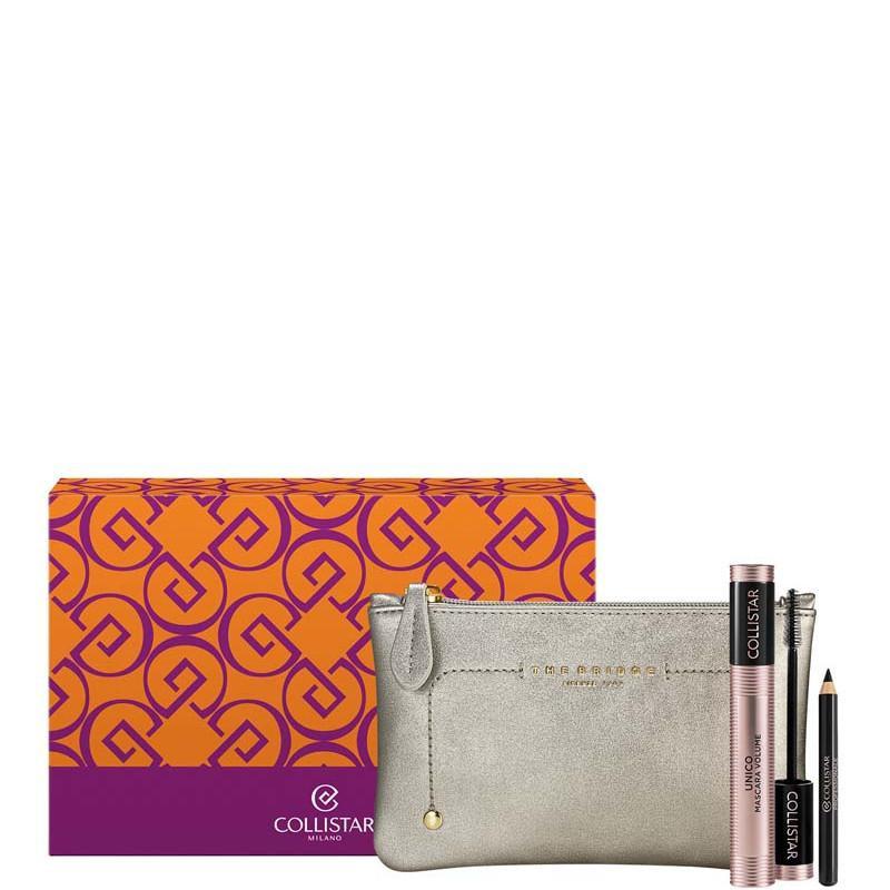 Il cofanetto è composto da: Unico Mascara Volume Nero Intenso + Professionale Matita Occhi Nera formato speciale + Beauty-Bag THE BRIDGE.