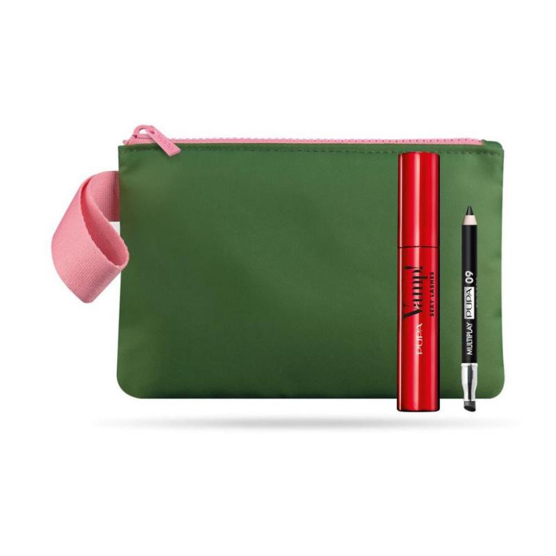 Mascara volume audace, effetto curvy. Matita occhi triplo uso: eyeliner, kajal, ombretto. Cofanetto contenente: Vamp! Sexy Lahes 011 Sexy Black + Multiplay 09 Deep Black Special Size. Regala alle ciglia un look estremamente sensuale con Vamp! Sexy Lashes, un’arma irresistibile di seduzione per uno sguardo pericolosamente sexy. Volumizza, solleva e incurva: le ciglia appaiono enfatizzate da curve vertiginose e da una nuova silhouette che sfida la gravità. Il maxi scovolo in fibra dalla forma sinuosa garantisce un rilascio generoso, le setole lunghe alla base permettono di esercitare l’azione meccanica di incurvatura.