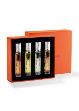 Questo è il Travel Set The Gems of the Empire: un vertiginoso viaggio alla (ri)scoperta di quattro leggendari profumi unisex Atkinsons in fiale formato viaggio da10 ml. Questa selezione comprende Pirates Grand Reserve, Scilly Neroli, Mint and Tonic e The Big Bad Cedar.