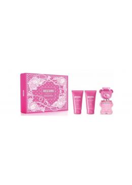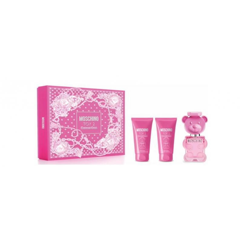Cofanetto contenente: Eau de Toilette 50 ml + gel bagno e doccia 50 ml + latte corpo 50 ml. Un profumo che avvolge una dolce nuvola rosa di chewing gum. Il MOSCHINO TOY 2 BUBBLE GUM è il fratello dell'iconico TOY 2, ma questa volta la solita forma di orsacchiotto è stata vestita con un abito rosa dalla testa ai piedi. Una creazione che dona piena energia positiva, ispira e motiva allo stesso modo corpo, anima e spirito. MOSCHINO TOY 2 BUBBLE GUM cattura il lato divertente della vita, un profumo che si distingue dal resto. Un profumo appartenente alla categoria delle fragranze floreali-fruttate-orientali, innescato dalla vivace nota di gomma da masticare, dolce, speziata e intensa allo stesso tempo. Gli agrumi canditi sono controbilanciati da pesche succose e note speziate come lo zenzero o la cannella, che alla fine si immergono in uno speciale cocktail di muschio e accordi legnosi.