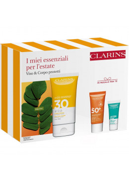 I nostri trattamenti superstar estivi per idratare e proteggere la pelle dagli effetti nocivi del sole, lasciandola splendida, abbronzata e dall’aspetto sano. Questo set contiene: Crema Solare Corpo SPF 30 150 ml Prodotto vendita + Crema Solare Protezione Molto Alta SPF 50+ 30 ml Formato discovery + Gel Doposole Rinfrescante 8 ml Campione + Double Serum campione