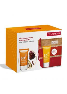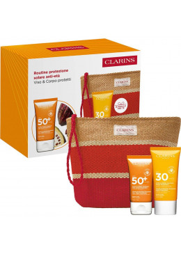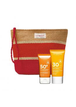 I nostri trattamenti superstar estivi per idratare e proteggere la pelle dagli effetti nocivi del sole, lasciandola splendida, abbronzata e dall'aspetto sano. Questo set contiene: Crema Solare Viso Protezione Molto Alta SPF 50+ 50 ml - Prodotto vendita + Crema Solare Corpo SPF 30 75 ml - Formato discovery + L'elegante pochette dell'estate firmata Clarins in regalo per te.