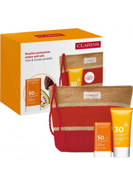 I nostri trattamenti superstar estivi per idratare e proteggere la pelle dagli effetti nocivi del sole, lasciandola splendida, abbronzata e dall'aspetto sano. Questo set contiene: Stick Solare Invisibile Protezione Alta SPF50 17 g - Prodotto vendita + Crema Solare Giovinezza Protezione Alta SPF30 Corpo 75 ml - Formato deluxe + L'elegante pochette dell'estate firmata Clarins in regalo per te