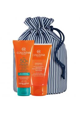 Il cofanetto è composto da: Crema Solare Protezione Attiva Pelli Ipersensibili SPF 50+ 100 ml + Doccia-Shampoo Doposole 150 ml + Pochette. Il piacere e la sicurezza di una crema dalla texture morbida, ad altissima protezione, facile da applicare e di rapido assorbimento. Una formula ancora più potente che sfrutta le eccezionali proprietà dell’estratto di Opuntia iperfermentato, di origine italiana, ricco di flavonoidi, mucillagini e polisaccaridi e vitamine dall’elevato potere idratante, antiossidante e lenitivo. Questa azione è potenziata da uno speciale estratto di Luppolo, ricco di polifenoli, antiossidanti e antibatterici, in grado di calmare le irritazioni, migliorare l’idratazione e donare un generale senso di benessere per le pelli più sensibili sottoposte agli stress dell’esposizione solare. Adatta a tutta la famiglia anche ai bambini sotto i 3 anni e per proteggere capillari, macchie, nei, tatuaggi e cicatrici. Perfetta sia al mare che in montagna. Collistar è attenta al benessere del pianeta: il tubo è 100% in PCR riciclabile e le formule sono coral-friendly. TESTATO DERMATOLOGICAMENTE *nickel 0,001%