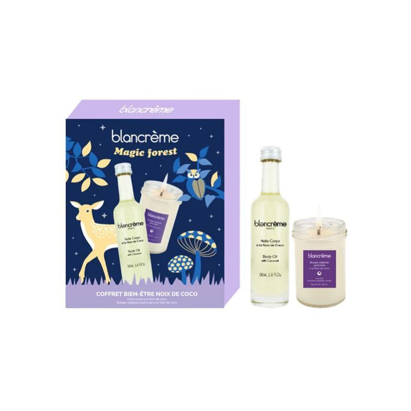 Un set regalo per il benessere che combina un olio per il corpo al cocco per il massaggio e una candela per l'ambiente al profumo di cocco per un'esperienza sensoriale rilassante e calmante. Un set regalo per sé o da condividere.