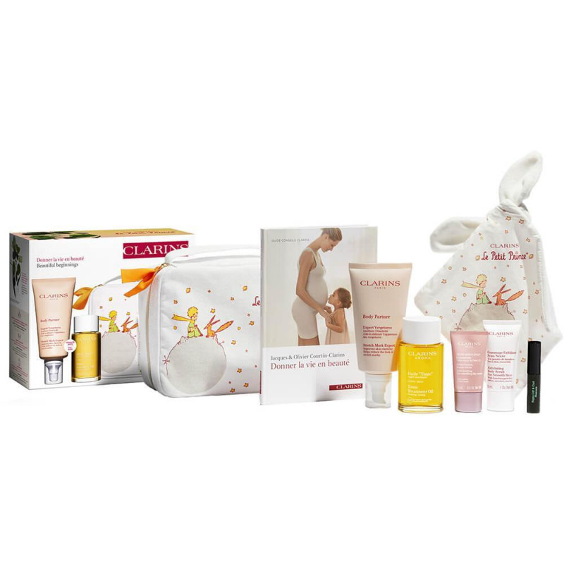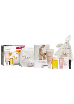 Questo cofanetto speciale maternità riunisce in una trousse tutti gli essenziali per le donne in dolce attesa e il loro bambino. Gli indispensabili beauty per le future e neo-mamme: per il viso, una crema giorno energizzante che attenua i segni della stanchezza per il corpo, un esfoliante delicato e un super duo rassodante olio e crema per preservare l’elasticità della pelle. Per il make-up, un mascara che rimodella e incurva le ciglia, per uno sguardo perfetto in un attimo. È fondamentale prendersi cura di sé durante e dopo la gravidanza. Ecco perché Clarins offre anche la guida Dare la vita... in bellezza, piena di segreti di bellezza, consigli lifestyle, esercizi e ricette per rimanere in piena forma. Infine, un delizioso peluche per il bambino!