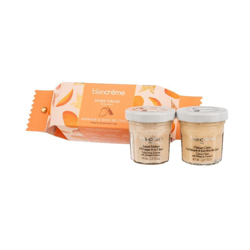 Questo cracker è completato da una routine viso da eseguire una volta alla settimana. Il nostro sorbetto esfoliante all'arancia e limone è ideale per effettuare una doppia esfoliazione della pelle. Per nutrire e idratare la pelle, niente come la maschera viso alla crema di mango e cocco con la sua consistenza cremosa. Alla fine del trattamento la pelle risulta molto morbida e lenita. Il piccolo duo da offrire senza moderazione! Cofanetto contenente: Sorbetto esfoliante all'arancia e limone 40 ml + Maschera viso crema mango e cocco 40 ml. Ideale per pelli secche e molto secche