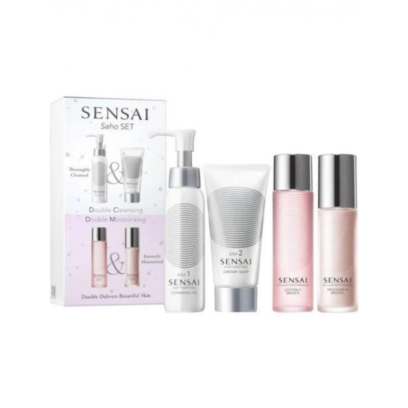 Il set ideale per il rituale Saho SENSAI, Doppia Pulizia e Doppia Idratazione. Inizia il tuo rituale purificando la pelle con SILKY PURIFYING CLEANSING OIL e SILKY PURIFYING CREAMY SOAP, entrambi in un pratico formato speciale in seguito, ristora la pelle con CELLULAR PERFORMANCE LOTION II (MOIST) in formato speciale e, infine, applica CELLULAR PERFORMANCE EMULSION II (MOIST) in formato speciale dalla formula ricca e nutriente. Con Saho, la pelle è detersa e idratata in profondità e ritrova un aspetto più sano e radioso.