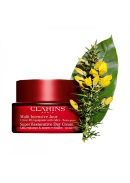 Il trattamento anti-età giorno, che attenua le conseguenze sulla pelle dei cambiamenti ormonali legati all’età. Il viso è immediatamente levigato, giorno dopo giorno la pelle appare più tonica, uniforme e come rimodellata. Il suo segreto? Un potente duo vegetale, nato dall'INNOVAZIONE Clarins, composto dall’estratto di harungana bio e dall’estratto di ginestra bio, che contribuisce a ridensificare la pelle, donare un effetto lifting e contrastare il rilassamento cutaneo. Le rughe sono attenuate. Perfettamente idratata, la pelle è più rimpolpata. La texture fondente contribuisce a rendere l’incarnato uniforme e la pelle più luminosa. Il profumo fresco dalle delicate note floreali, con un cuore cipriato, regala una piacevole sensazione di comfort. Include il complesso antinquinamento Clarins.