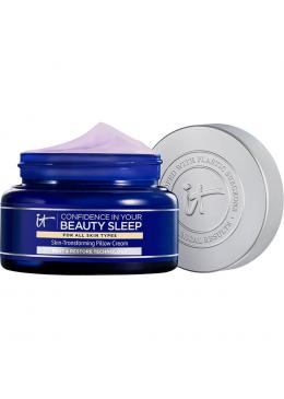 Confidence in your Beauty Sleep è una crema notte riparatrice e rimpolpante che aderisce perfettamente alla pelle senza lasciare traccia sul cuscino. È stata appositamente formulata per agire di notte, nelle ore in cui la pelle recupera e si rigenera attivamente, per una pelle visibilmente più giovane sia alla vista che al tatto. Questo trattamento è studiato per combattere i 5 segni dell’invecchiamento: linee sottili, secchezza, perdita di tonicità, incarato spento, texture irregolare. La formula è adatta a tutti i tipi di pelle ed è arricchita con acido ialuronico, adenosina e un complesso di ceramidi per aiutare a migliorare la barriera cutanea. La formula innovativa permette di evitare il trasferimento del prodotto sul cuscino durante la notte.