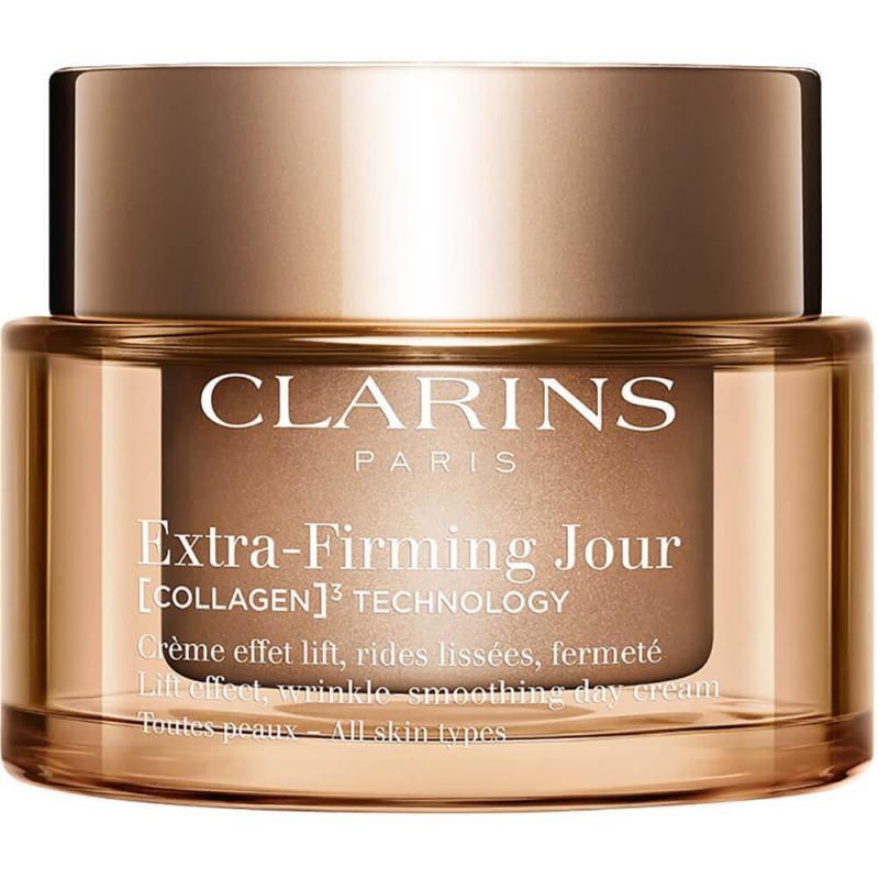 La Ricerca Clarins ha creato un trattamento tonificante con principi attivi che contribuiscono ad aumentare le riserve di collagene* per una pelle più tonica in 7 giorni.** Una crema giorno tonificante di nuova generazione. La sua esclusiva*** COLLAGEN TECHNOLOGY agisce in modo mirato sul collagene grazie al suo potente trio di principi attivi. - Polipeptide di collagene. - Estratto di albero di pecan. - Estratto di mitracarpus. La niacinamide, molecola della giovinezza, contribuisce a migliorare la luminosità e l’omogeneità dell’incarnato. Risultati: la pelle è più tonica, come liftata. Le rughe sono levigate, gli zigomi più rimpolpati e i contorni del viso più definiti. Texture: i Laboratori Clarins hanno creato una combinazione unica di ingredienti per ottenere una texture avvolgente che dona una sensazione di comfort, senza effetto grasso. Le creme Extra-Firming sono ora ricaricabili. *Test ex vivo su espianti fotoinvecchiati, misura della quantità di collagene di buona qualità ben strutturato. **Test consumatori, 109 donne. ***In Clarins.