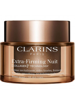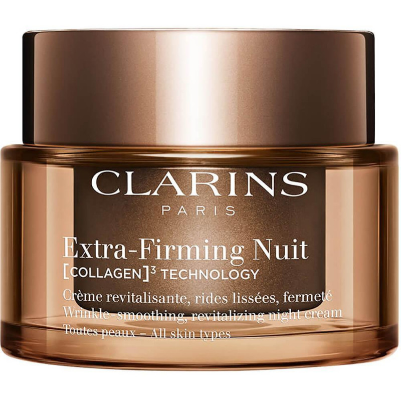 La Ricerca Clarins ha creato un trattamento tonificante con principi attivi che contribuiscono ad aumentare le riserve di collagene* per una pelle più tonica in 7 giorni.** Una crema notte tonificante di nuova generazione. La sua esclusiva*** COLLAGEN TECHNOLOGY agisce in modo mirato sul collagene grazie al suo potente trio di principi attivi. - Polipeptide di collagene. - Estratto di albero di pecan. - Estratto di mitracarpus. La niacinamide, molecola della giovinezza, consente di migliorare la texture e la luminosità della pelle. La formula, composta da più di un milione di peptidi di avocado,****aiuta la pelle a rigenerarsi durante la notte. La pelle appare riposata, pronta per affrontare una nuova giornata. Risultati: la pelle è più tonica, come liftata. Le rughe sono levigate, gli zigomi più rimpolpati e i contorni del viso più definiti. Texture: i Laboratori Clarins hanno creato una combinazione unica di ingredienti per ottenere una texture avvolgente che dona una sensazione di comfort, senza effetto grasso. Le creme Extra-Firming sono ora ricaricabili. *Test ex vivo su espianti fotoinvecchiati, misura della quantità di collagene di buona qualità ben strutturato. **Test consumatori, 107 donne. ***In Clarins. ****In un barattolo di crema da 50 ml.