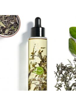 Olio nutriente e illuminante con Tè Verde, Marula e Gelsomino Una miscela di preziosi oli botanici infusi con vere foglie di Tè verde Bancha utilizzati puri, dopo la spremitura a freddo, per esaltarne le proprietà idratanti, elasticizzanti e illuminanti. L’estratto oleoso di Tè Verde è ricco di polifenoli antiossidanti e vitamina E con azione antietà e fotoprotettiva. L’ olio di marula contiene una concentrazione di vitamina C superiore fino a 8 volte quella presente negli agrumi e dona una fresca radiosità alla pelle. L’olio essenziale di gelsomino tonifica e rivitalizza mentre l’ olio di mandorla dolce con la sua alta percentuale di grassi essenziali, vitamine, aminoacidi e sali minerali nutre intensamente, perfeziona l’incarnato e rigenera l’epidermide disidratata. Questo olio di bellezza non unge, non appiccica, si assorbe rapidamente e può essere usato su corpo, viso e capelli per aggiungere luminosità e splendore. Contiene il 99 % di ingredienti di origine naturale.