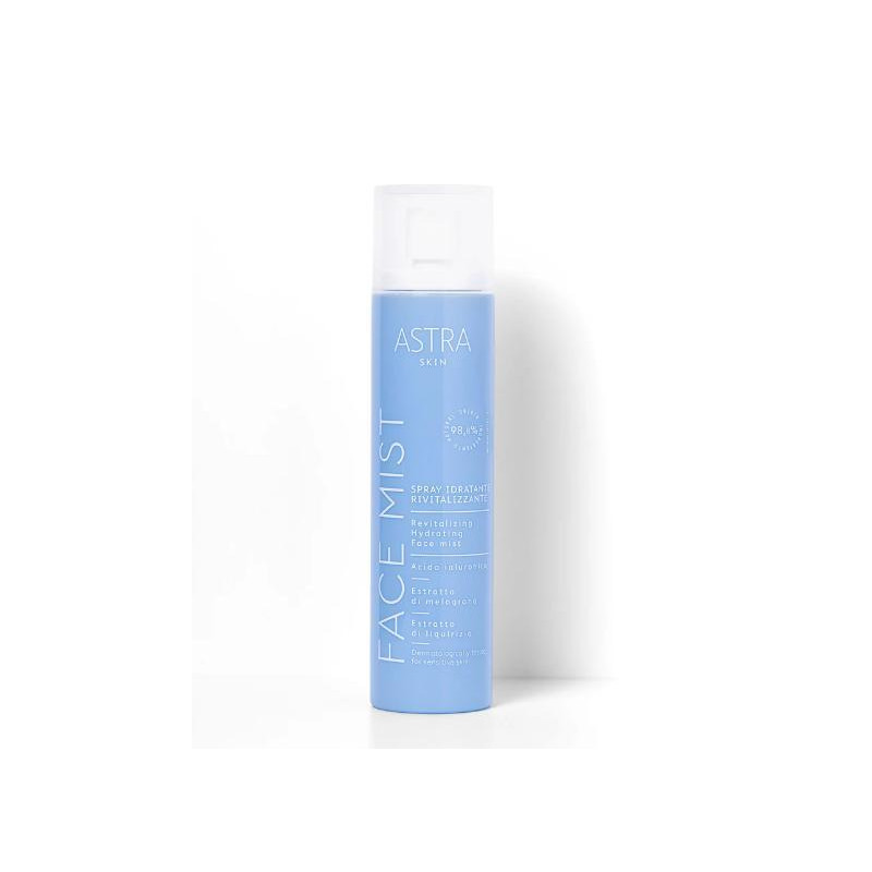 Face Mist di Astra Skin è la coccola quotidiana pensata per rigenerare la pelle dallo stress di tutti i giorni. Leggera come una carezza, questa nebbia d’acqua infusa di attivi preziosi regala una sensazione immediata di freschezza e benessere. Perfetta in ogni momento della giornata, può essere vaporizzata sia prima che dopo il make-up, per idratare*, rivitalizzare e riequilibrare l’incarnato. La sua formula ricca ma impalpabile aiuta a proteggere la pelle dalle aggressioni esterne, donandole un aspetto fresco, luminoso e disteso. Un vero concentrato di comfort e idratazione in formato spray, per un rituale di bellezza rapido ma efficace. *TESTATO: dopo 30 minuti dall’applicazione la pelle è più idratata del 39%. Test strumentale condotto su 20 volontari con pelle secca/tendenzialmente secca.
