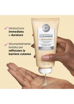 Sviluppato in collaborazione con chirurghi plastici e dermatologi, Confidence in a Cleanser è il detergente amato dalla pelle che combina il potere del detergente in schiuma con l'idratazione di un siero! Rimuove delicatamente trucco, olio, SPF e tracce di inquinamento, sostenendo la barriera cutanea. Abbastanza delicato da essere usato due volte al giorno senza seccare o spogliare la pelle, offre un'idratazione immediata e duratura, rendendolo il detergente per il viso perfetto anche per i tipi di pelle più sensibili. Ideale per tutti i tipi di pelle e testato dall'oftalmologo per la zona sensibile del contorno occhi, Confidence in a Cleanser è il detergente con formula vegana (senza ingrediente di origine animale) di tutti i giorni, senza solfati, senza alcol e senza sapone. Inoltre, contiene ceramidi e acido ialuronico per un'esperienza di pulizia a misura di pelle.