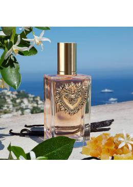 La fragranza Dolce&Gabbana Devotion Eau de Parfum è un viaggio sensoriale seducente e rassicurante capace di evocare l'insieme di valori positivi cari a Dolce&Gabbana di cui il Cuore Sacro è portavoce. Una creazione olfattiva dagli squisiti contrasti: luminosa nelle note di testa, sensuale in quelle di fondo. Il design Il Cuore Sacro, segno tangibile e universale dell'amore in tutte le sue forme e sfumature, illumina con i suoi fregi inconfondibili il flacone di Devotion Eau de Parfum. La fragranza è stata creata da Olivier Cresp in esclusiva per Dolce&Gabbana. Testa Il profumo apre con le note stuzzicanti e gourmand dei Limoni canditi. Cuore Nel cuore esplode la freschezza dei Fiori d'Arancio. Fondo Il tocco caldo e sensuale della Vaniglia trasporta l'olfatto verso una destinazione dolce e sofisticata.