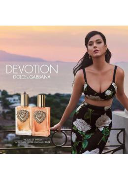 Dolce&Gabbana Devotion Eau de Parfum Intese, nuovo capitolo della storia olfattiva Dolce&Gabbana Devotion, omaggia l'incensante dedizione del brand allo stile, all'artigianalità e al design Made in Italy. IL DESIGN Dolce&Gabbana Devotion Eau de Parfum Intense è racchiusa in una sofisticata bottiglia di vetro color ambra, elegantemente decorata dall'inconfondibile Cuore Sacro. Dolce&Gabbana Devotion Eau de Parfum Intense è l'ultima fragranza Luminosa e Gourmand che si unisce alla collezione Devotion. La nuova creazione olfattiva rivisita la fragranza originale con le sue note caratteristiche di Fiore d'Arancio e Vaniglia, arricchita da un'aggiunta distintiva di Nocciola.