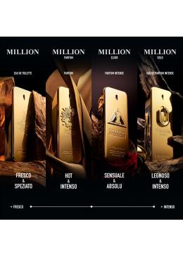 Più elegante. Più moderno. Million Gold esprime l'estasi del successo. Irradia l'energia vibrante ed estatica che ti inebria con l'oro. Una fragranza ultra-sensuale e legnosa che unisce il mandarino fresco al caldo legno di cedro e al luminoso legno di sandalo.