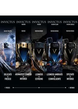 Trionfa con INVICTUS Victory Absolu Parfum Intense: la firma maschile vincente di Rabanne. Creato per l'eroe che lascia sempre il segno, INVICTUS Victory Absolu cattura lo scontro delle onde fresche sulla calda roccia vulcanica attraverso un contrasto di accordi legnosi, speziati e ambrati. La combinazione olfattiva di pepe nero fresco, ambra sensuale e sandalo avvolgente gli permette di incidere la vittoria nella pietra mentre conquista il trionfo definitivo.