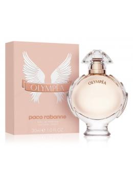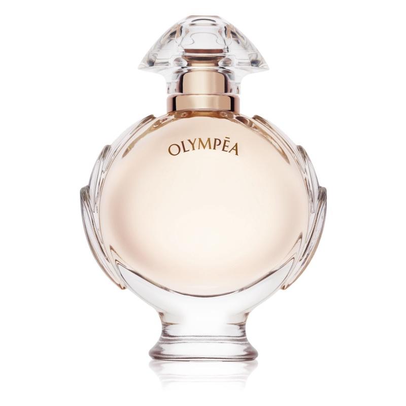 Paco Rabanne Olympéa è rappresentato da una dea, una moderna Cleopatra, la regina tra le regine, che domina uomini e divinità. La fragranza di questa eau de parfum è decisamente sensuale, inedita e con un pizzico di irriverenza, alla quale nessuno può resistere. La composizione di Olympéa si apre con note di Mandarino verde insieme ad un accordo di Vaniglia salata, particolarmente magnetico il cuore floreale si compone di Gelsomino acquatico e fiori di Zenzero, mentre la scia di legno di Cashmere e Ambra grigia è persistente e sensuale. Il flacone è come un gioiello, un talismano: caratterizzato da elementi art-decò che adornano la forma circolare, simbolo evocativo delle ali della vittoria, sormontato da un prezioso tappo cabochon.