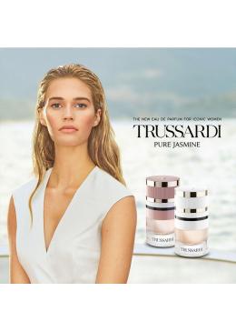 Trussardi Pure Jasmine è il profumo delle nuove icone femminili che possiedono forza e audacia. Un mix prezioso, una fragranza Chypre-Luminosa-Fiorita per una composizione olfattiva indimenticabile. Le Note di Testa esplodono vivaci e luminose, con il Bergamotto che si affianca ad un fresco accordo di Pistacchio Salato e alla ricchezza del Neroli. Nel Cuore l’Assoluta di Gelsomino, la Champaca, chiamato il fiore della felicità, e il Mugane™ esprimono tutto il carattere intrepido e imprevedibile di chi lo indossa. Le Note di Fondo, calde ed orientali, persistono a lungo con gli inconfondibili accenti di Vaniglia, Legno di Sandalo e il seducente aroma dell’Olio Essenziale di Patchouli. ll packaging, vero e proprio oggetto di design, veste i toni sofisticati del bianco, dell’oro e del nero e, come la fragranza, è eco sostenibile.