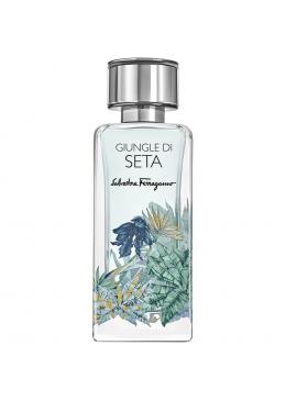 Storie di Seta, un'antologia di profumi ispirata alle sete di Salvatore Ferragamo. La collezione si compone di quattro essenze Eau de Parfum, ognuna delle quali può essere indossata singolarmente oppure accostata con una o più essenze della collezione grazie all'esclusivo accordo Filo di Seta. Giungle di Seta è una Eau de Parfum vibrante che si apre con le note vivaci e croccanti del Green Pea che contrastano con la trasparenza vellutata della Peonia, rischiarata dallo spirito luminoso del Musk. Una fragranza travolgente ispirata alla natura selvaggia della giungla.
