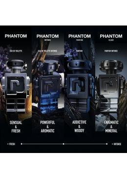 Scopri PHANTOM Elixir: la fragranza maschile più rock and roll di Rabanne. PHANTOM Elixir è la fragranza che cattura la vibrante energia di una notte di festa, concepita per l’uomo rock and roll che vive secondo le proprie regole in un affascinante gioco di luci e ombre. Più intenso che mai, PHANTOM Elixir dà vita a un nuovo capitolo della seduzione grazie all’unione di un fresco accordo marino, un vibrante oud minerale e un caldo baccello di vaniglia, rivelando la dualità che è in te.