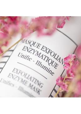 Una maschera esfoliante preparatrice per uniformare e illuminare l'incarnato in 1 minuto. Peeling delicato* di nuova generazione, la maschera Masque Exfoliant Enzymatique è un soin preparatorio che rivela uniformità e radiosità di tutti i tipi di pelle in appena 1 minuto, compresa quella sensibile. Un gesto veloce per trasformare la qualità della pelle grazie a 2 azioni complementari : 1. Esfolia e prepara La papaina, un enzima al 100% d’origine naturale, esfolia delicatamente la pelle preparandola in modo ideale a ricevere i trattamenti successivi. La pelle rimane liscia, morbida e vellutata. 2. Rivela la luminosità Un mix di attivi dall'azione perfezionatrice deterge e purifica la pelle, favorendo omogeneità e luminosità dell'incarnato. La pelle rimane più uniforme e luminosa, splendidamente bella. Texture che si trasforma da polvere-a-crema Polvere fine che, a contatto con l'acqua, si trasforma in una mousse cremosa straordinariamente morbida, ideale per essere applicata come maschera. Questo trattamento ibrido coniuga 2 gesti sublimi : la forza di un esfoliante e la delicatezza di una maschera per ottenere una pelle nuova all'istante. La sua fragranza naturale e delicata è un istante di ritrovato benessere. *Esfoliante delicato