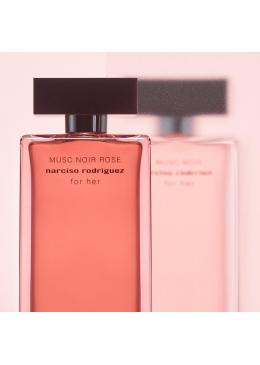 Narciso Rodriguez for her MUSC NOIR ROSE: un profumo da donna sensuale, che crea dipendenza. for her MUSC NOIR ROSE di Narciso Rodriguez è il profumo più inebriante della collezione for her. Questa fragranza floreale ambrata invita ogni donna ad esprimere la propria bellezza interiore e sensualità delicata. Un profumo floreale ambrato for her MUSC NOIR ROSE si apre con un inebriante bouquet floreale di note di rosa e tuberosa. Nel cuore della fragranza, l’iconico cuore di muschio di Narciso Rodriguez, si unisce a un accordo fruttato di prugna e alle note di bergamotto italiano, che apportano una leggera sferzata di freschezza. Sul fondo, il calore delle note di vaniglia si unisce alla profondità degli accordi di pelle scamosciata e patchouli, conferendo una sensualità terrosa a questa eau de parfum. Il flacone for her MUSC NOIR ROSE esalta i contorni slanciati del flacone for her, infondendo nel vetro trasparente una tonalità di rosa fumé che riflette i toni rosati del profumo al suo interno. In contrasto con il tappo nero lucido, crea un seducente gioco di luci e ombre.