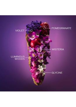 Floreale legnoso fruttato. Note di testa: Mela fuji, melograno, viole. Note di cuore: Gelsomino, glicine, fresia. Note di Fondo: Legno di sandalo e legni luminosi
