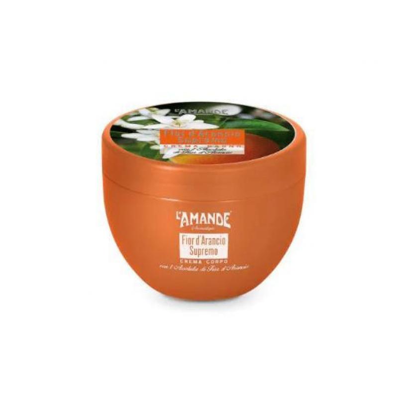 La crema corpo Fior d’Arancio Supremo lascia la pelle vellutata ed idratata assorbendosi rapidamente. È ricca di attivi importanti quali la vitamina E dalle proprietà antiossidanti e l’acido ialuronico, che favorisce la formazione del collagene. L’olio di avocado inoltre ha un effetto addolcente e rigenerante ideale per le pelli sensibili. Il profumo fiorito, dalle raffinate note di cuore dell’assoluta dei fiori di arancio, è completato da un fresco accordo d’acqua. Le note agrumate di testa conferiscono spunto ed immediatezza. Muschio bianco, ambra, sandalo e vaniglia fissano e danno persistenza alla composizione. Non contiene parabeni, siliconi, oli minerali, peg, coloranti.
