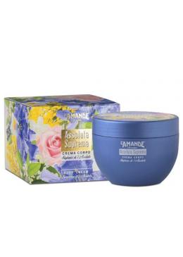 La Crema Corpo Assoluta Suprema L’Amande è idratante ed elasticizzante, a rapido assorbimento. La formulazione è arricchita con l’acido ialuronico, l’olio di karanja e la glicerina vegetale per contribuire a prevenire e contrastare gli inestetismi donando alla pelle morbidezza e tonicità. Contiene inoltre la vitamina E dalle proprietà antiossidanti naturali e gli estratti glicerici di fiordaliso e rosa damascena. La fresca profumazione è un tripudio delle 7 assolute Rosa di Grasse, Gelsomino, Iris, Fior d’Arancio, Cassis, Narciso e Mimosa. Non contiene parabeni, les/sls, coloranti, peg.