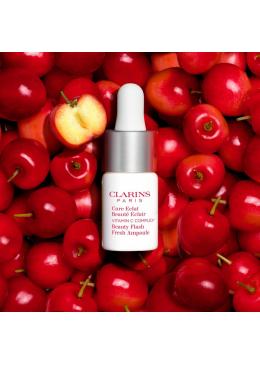Questo trattamento in forma di fiala combina un complesso di vitamina C concentrato al 15% e un siero arricchito con estratti di super frutti, mirto di rose e acerola. Le due formule si uniscono al momento dell’applicazione grazie al flacone Fresh-mix Clarins. L'incarnato ritrova il suo splendore, più uniforme e luminoso, giorno dopo giorno. La sua texture fluida ultra sensoriale offre una tolleranza ottimale.