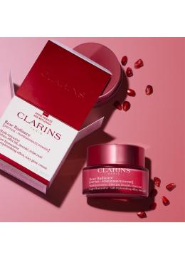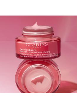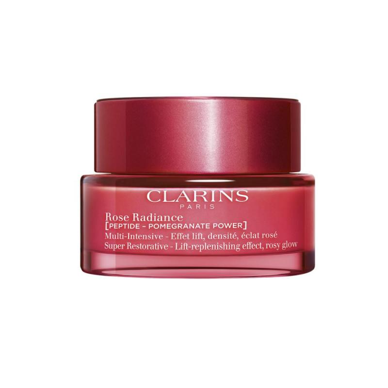 Per questa generazione di crema Rose Radiance, la Ricerca Clarins agisce sulla perdita di luminosità della pelle in menopausa. Il cuore della sua formula inedita è il nuovo complesso luminosità [PEPTIDE - POMEGRANATE POWER], che contribuisce all’uniformità dell’incarnato e a rivitalizzare la pelle. Risultato: La pelle, più liscia, riflette meglio la luce e ha un colorito roseo per un effetto pelle sana istantaneo. Clarins ha inoltre combinato gli estratti di ginestrone bio e di harungana bio per agire sul rilassamento cutaneo causato dal calo degli ormoni durante la menopausa. Insieme, formano un potente duo lifting densità che lascia la pelle ridensificata, compatta e giovane. La tonalità rosata della crema Rose Radiance agisce come un booster di energia per la pelle e il morale, offrendo un effetto sublimante immediato che ravviva lo splendore di tutte le donne, indipendentemente dal tipo di pelle e dalla carnagione. Composta al 93% da ingredienti di origine naturale, la crema Rose Radiance presenta una texture morbida e avvolgente. Una volta applicata sulla pelle, si fonde deliziosamente senza lasciare alcun residuo grasso.